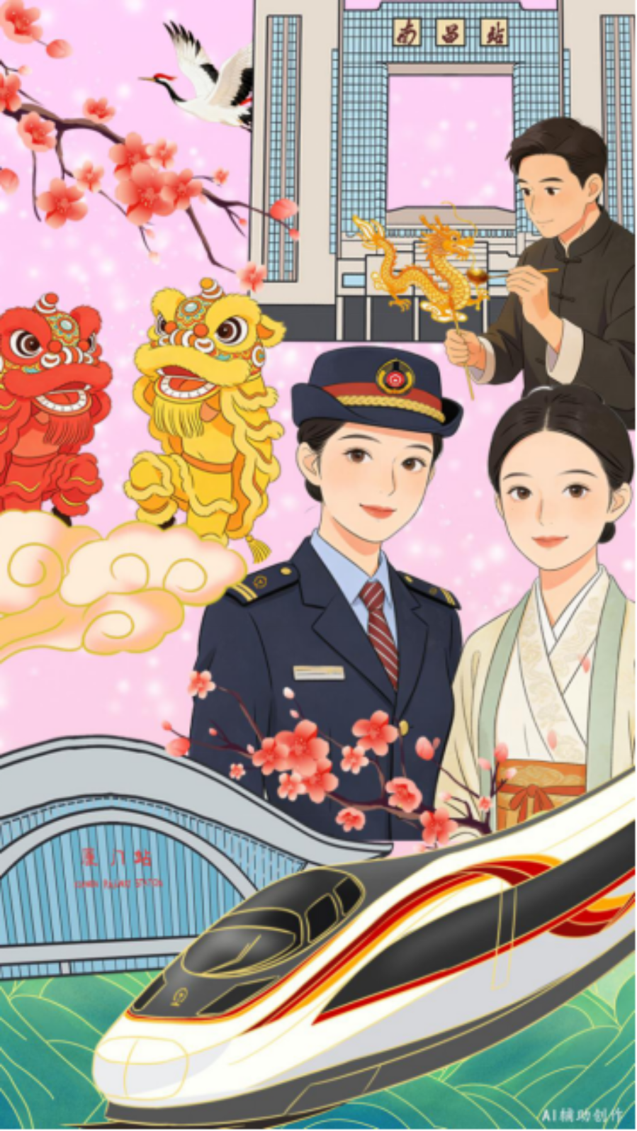 春运路上,文化活动异彩纷呈,“流动中国”正因文脉滋养更显温情与厚重,文化传承也因旅途烟火更具生机与活力!(文字:张译文、徐文文;AI漫画:张译文)