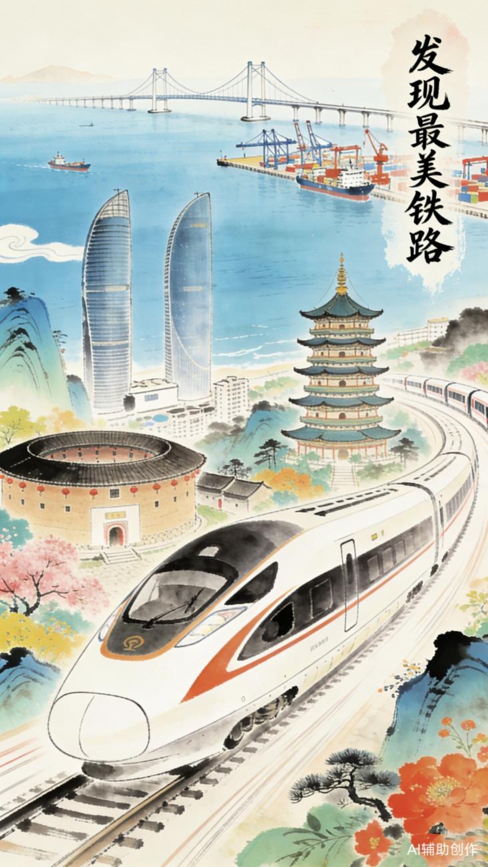 “发现最美铁路·浙闽通途看变迁”网络宣传活动,既是对浙闽地区沿海铁路建设成果的一次巡礼,也见证着区域发展变迁。从一条线到一张网,从单点突破到全域融合,浙闽地区沿海铁路承载着两地人民的美好期盼,也将继续书写新时代区域协调发展的新篇章,让“最美铁路”在山海之间绽放出更加耀眼的光芒。(文字:刘春萌;AI漫画:徐超)