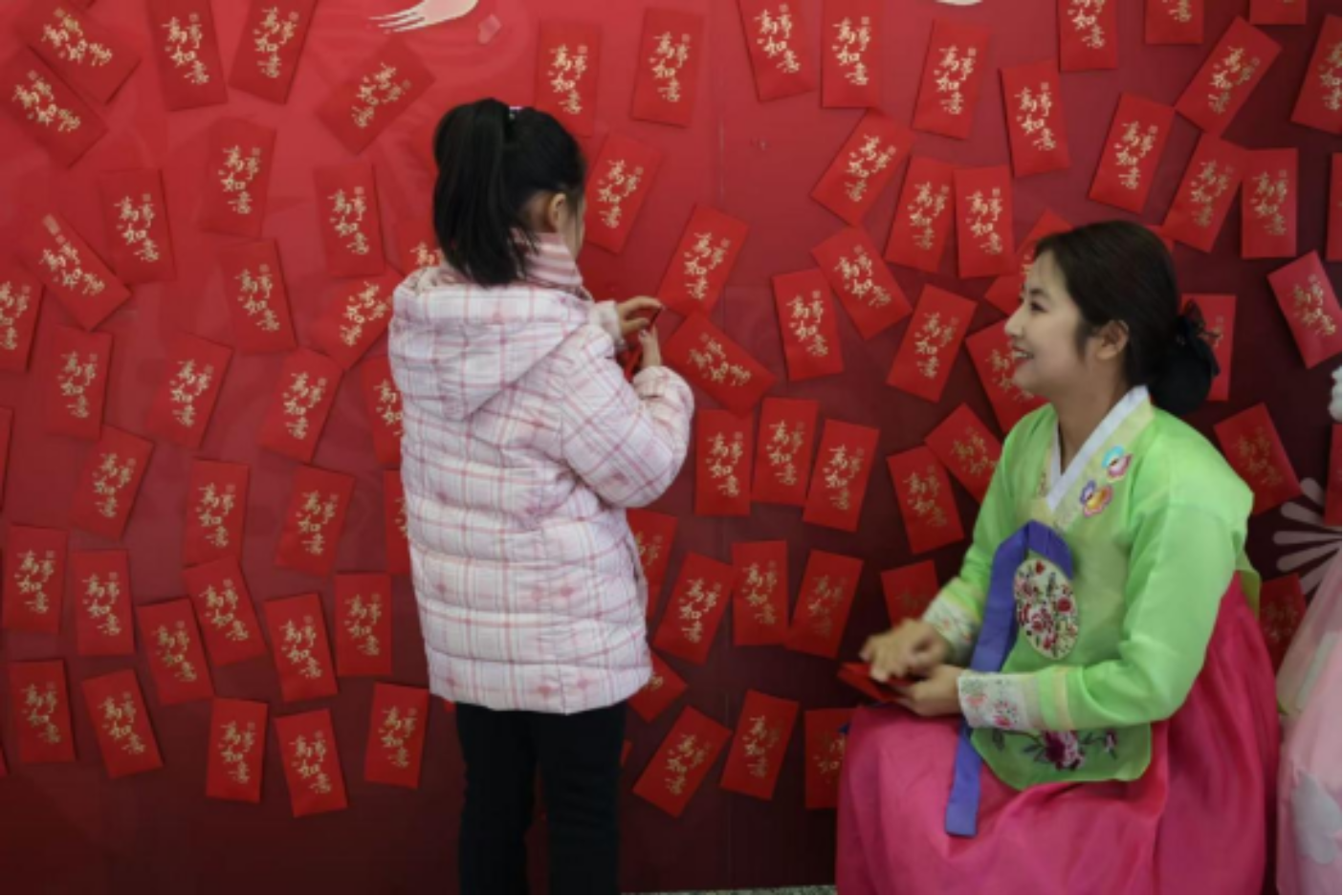 (敦化站的志愿者与旅客一起抽“福袋”)
