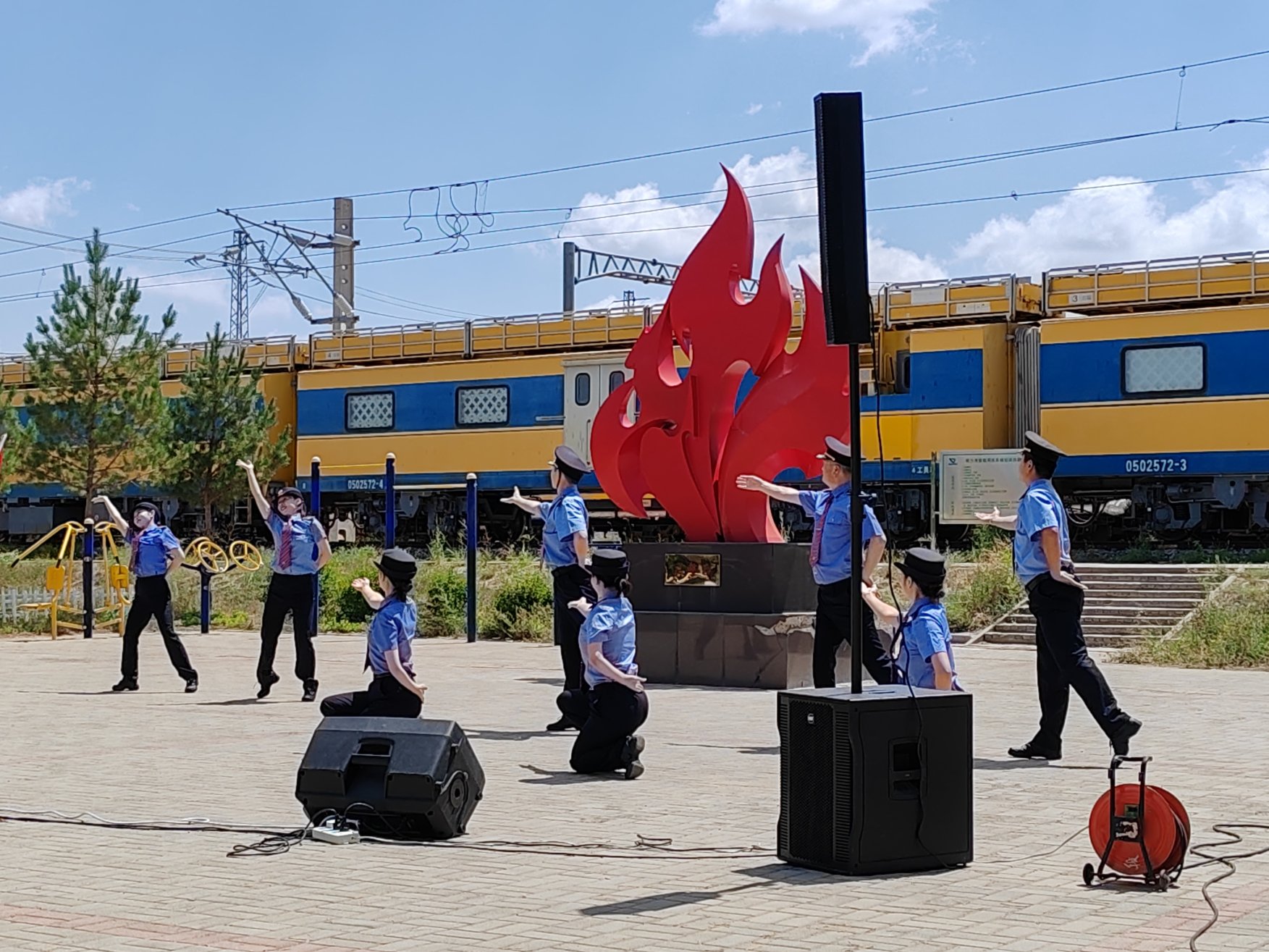 (草原铁路文艺轻骑兵开展“呼铁乌兰牧骑+”常态化演出服务。张宝珍 摄)