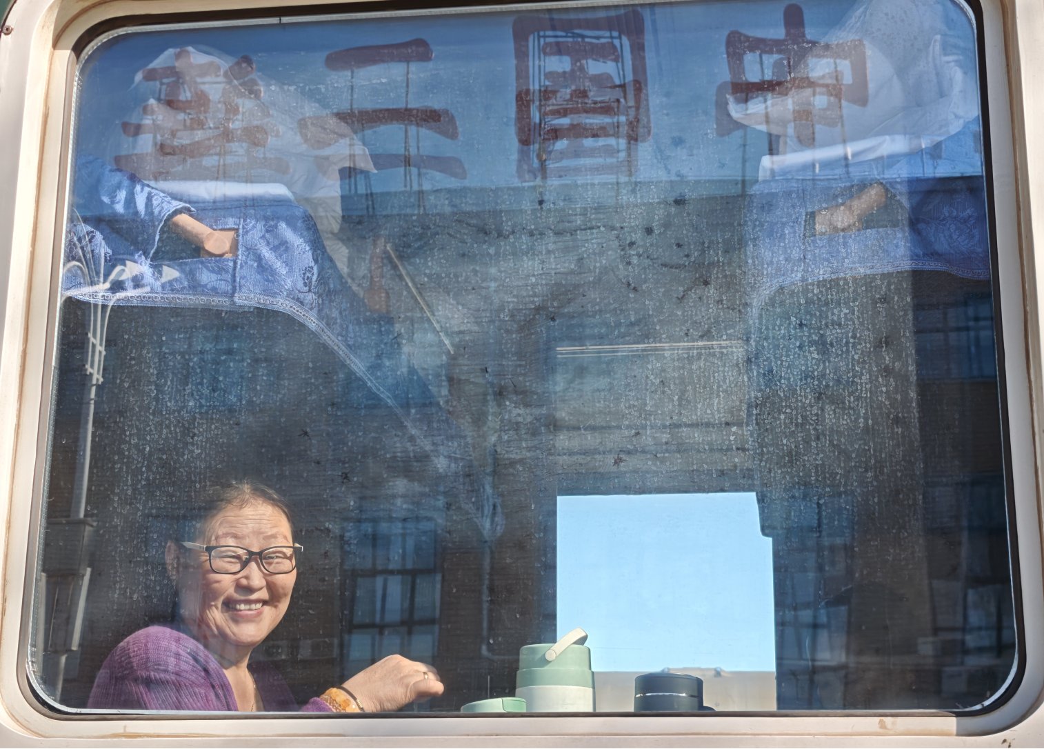 (列车上,到呼和浩特就医的蒙古国旅客格勒图雅笑容灿烂。张月 摄)