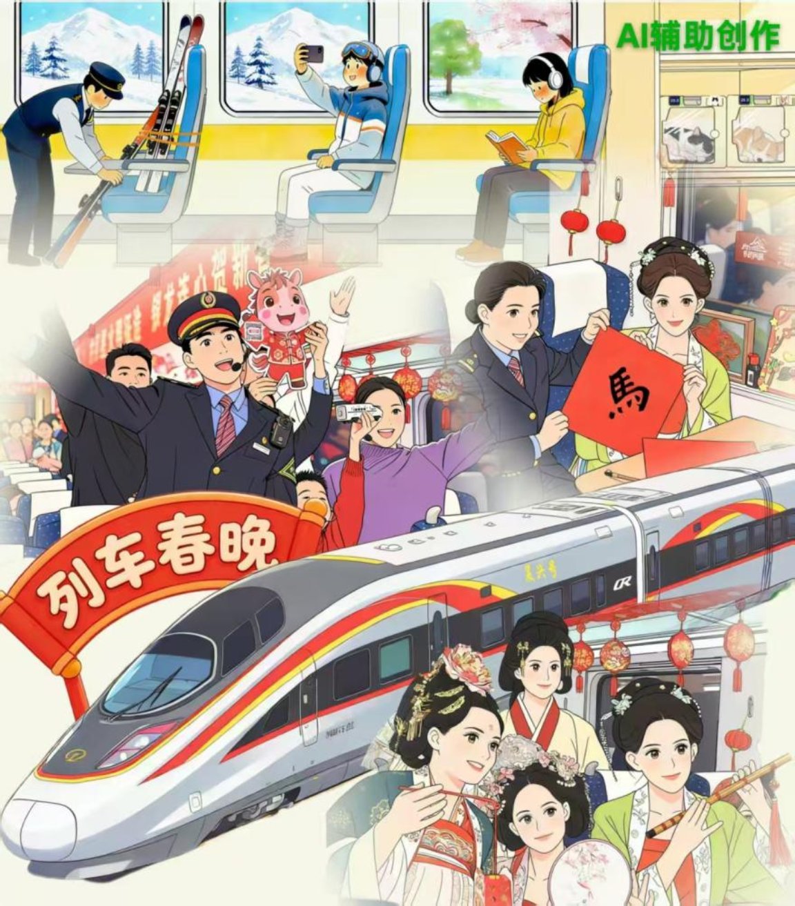 “钢铁巨龙”承载着千家万户的团圆期盼,更见证着中国的蓬勃发展。当列车载着欢声笑语驶向目的地,“流动中国”便在一程程温暖旅途中焕发新活力,向着更加美好的未来阔步前行。(文字:俞越、徐文文;AI漫画:俞越)