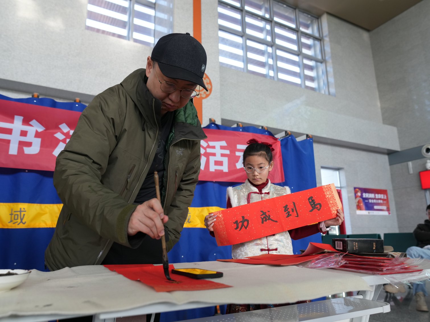 巴彦淖尔站候车厅,抵达和出发的旅客络绎不绝。2026年春运期间,候车旅客脸上的笑容、眼里的欢愉,都彰显春运的温暖与活力。站台上,工作人员默默守护每一趟列车,守护旅客的旅途;候车厅内,书法家现场挥毫,为旅客送上饱含祝福的春联与“福”字,将年味与温情传递给每一位归乡人……一方车站间,满满“烟火气”,铁路部门把年味与关怀送到旅客身边,让旅途更有温度、更具温情。(文字/图片:袁斌)