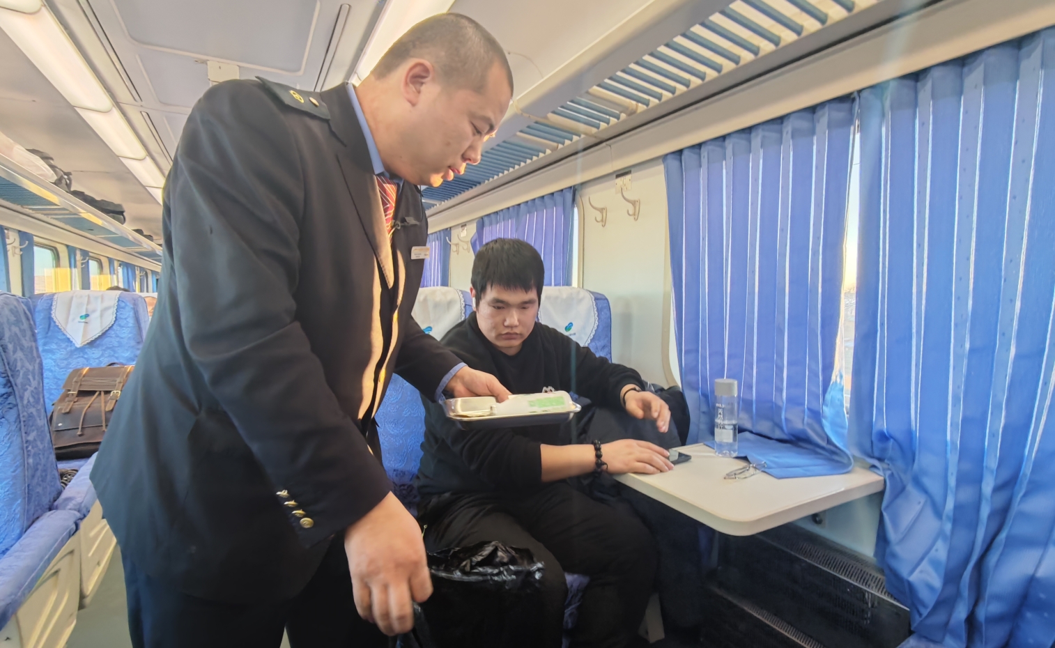 (列车上,到呼和浩特就医的蒙古国旅客格勒图雅笑容灿烂。张月 摄)
