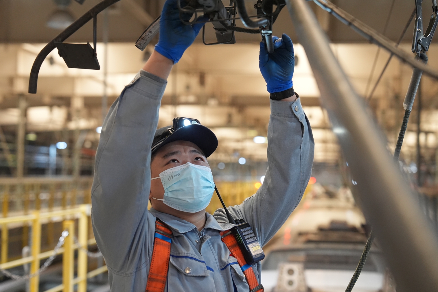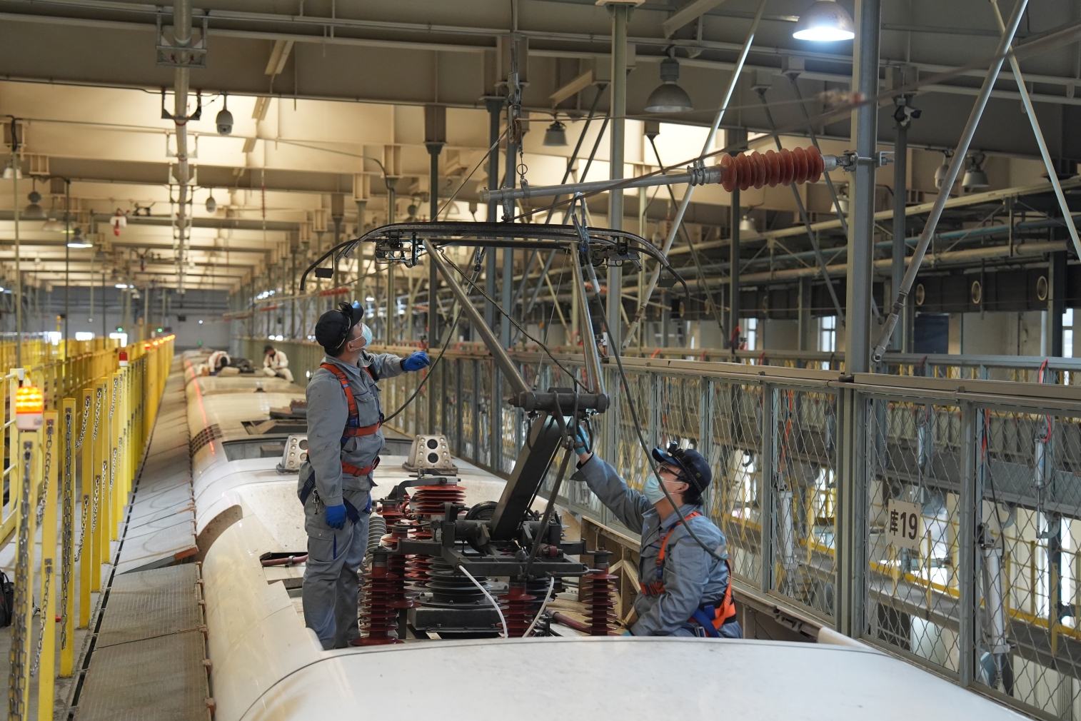 (动车组机械师检查受电弓性能状态是否良好。张道勤 摄)