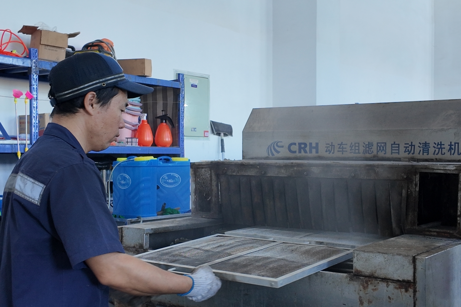 (作业人员正在清洗动车组空调滤网。张道勤 摄)