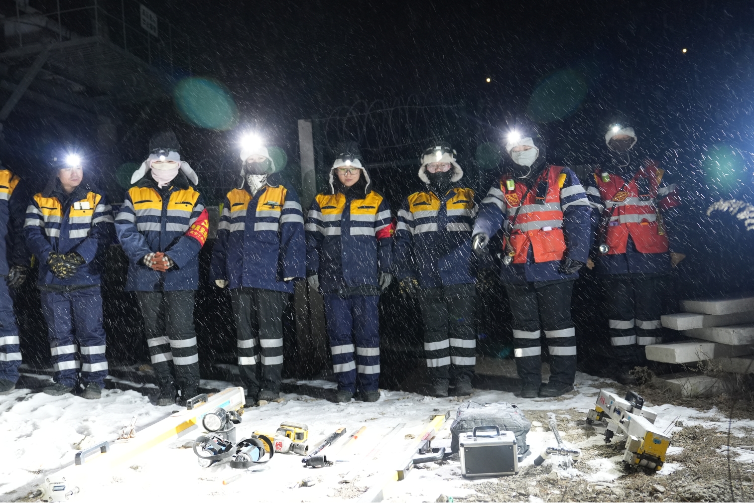 凌晨3点30分,作业圆满结束,她们踏出隧道时,夜空飘起了雪花,天气愈发寒冷。当夜色再次漫过轨面,这群年轻的身影又将奔赴下一个“天窗”作业点。