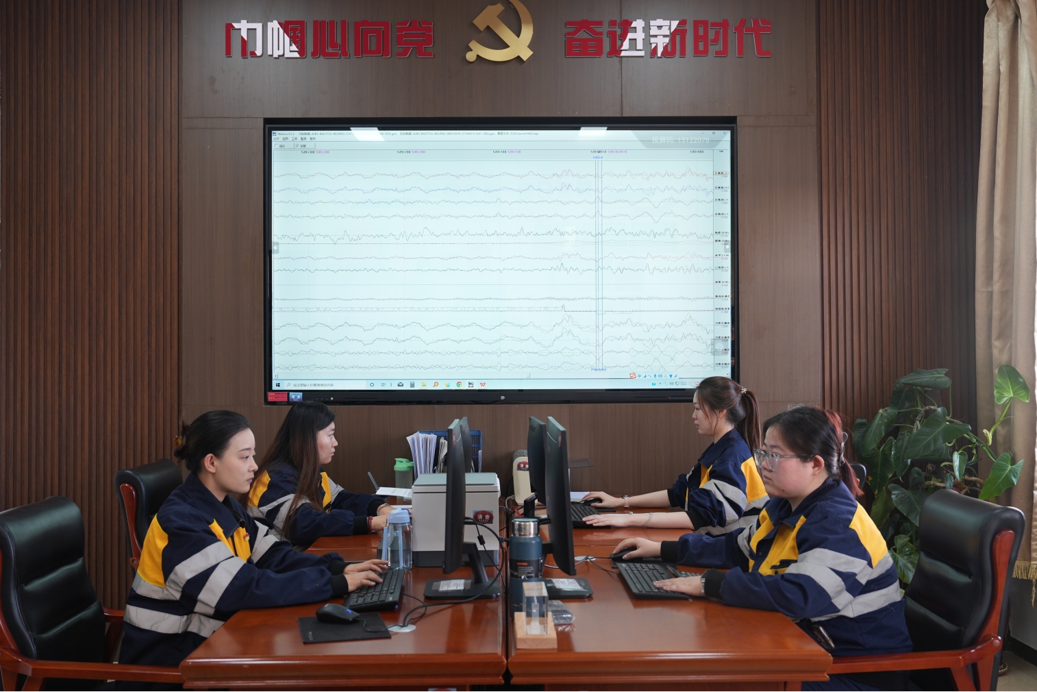 (女子质检组认真分析轨检车波形数据。王泽华 摄)