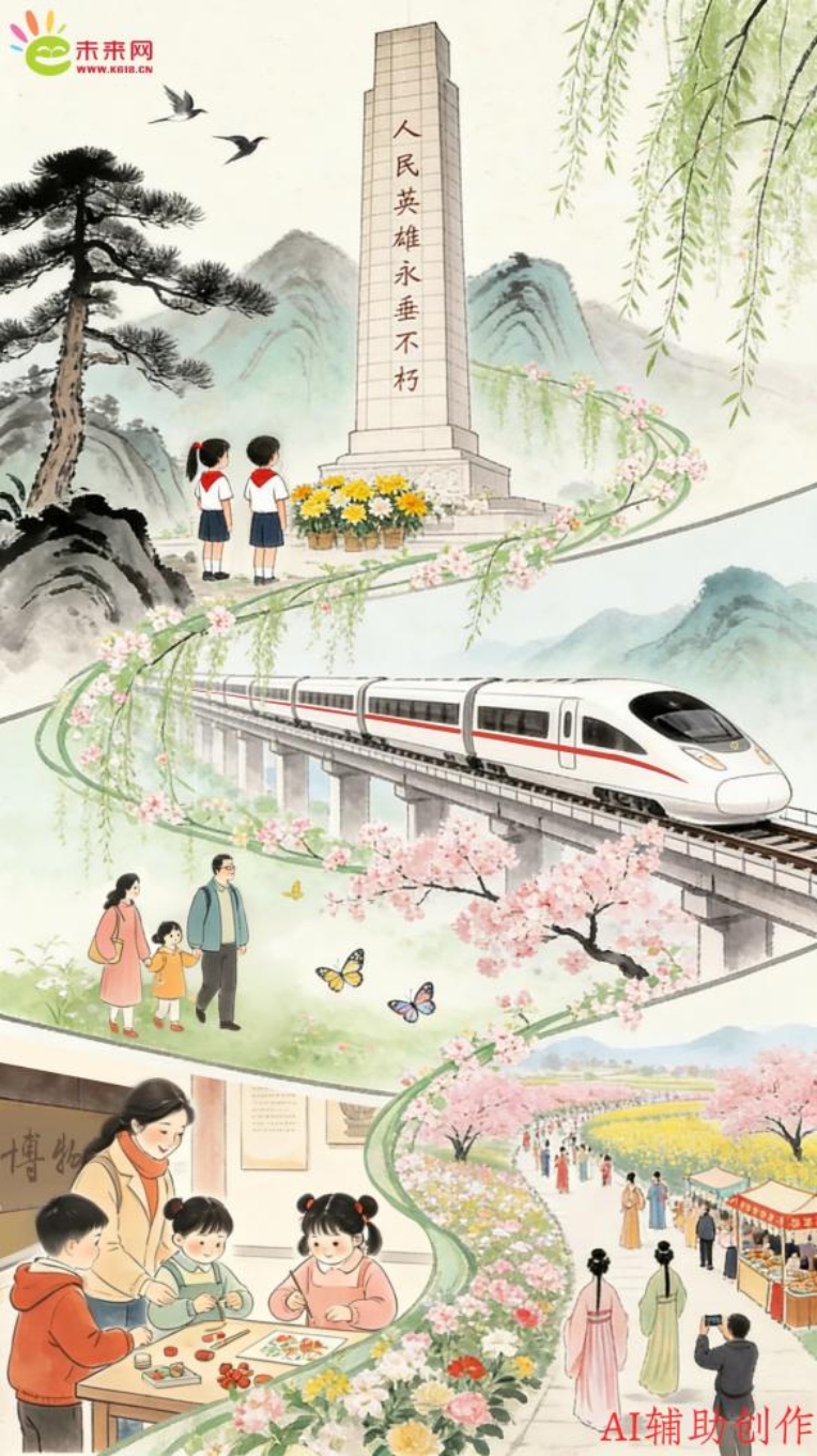 春和景明,万象更新。从“上春山”的追思到“游花海”的欢愉,从“忆先贤”的传承到“行万里路”的实践,家国情怀与“人间烟火”相融,精神滋养与消费活力共生,共同绘就了这个假期生机盎然的动人画卷。展望未来,这份蓬勃生机必将持续绽放,让我们循着春天的脚步,携手共赴更加繁花似锦的明天。(文字:谢鑫涛;AI漫画:丁杨影)